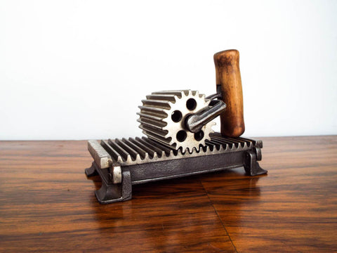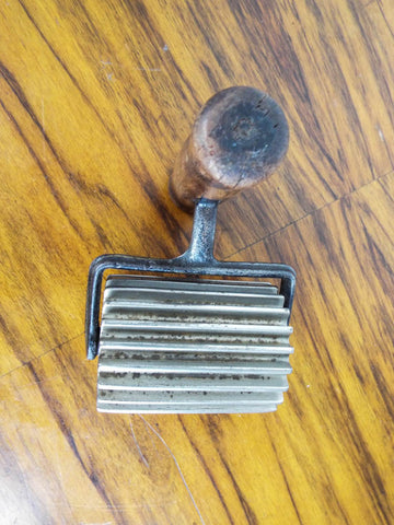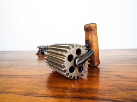 Victorian hand cranked fluting iron made by American Machine Co, Philadelphia, PA. These type of specialty irons were an essential appliance in the late 1800s as pleats and ruffles on collars, cuffs, and dresses were the fashion of the day. This American made cast iron fluting iron is pre1892. In 1892, North Bros. purchased American Machine Co. of Philadelphia.