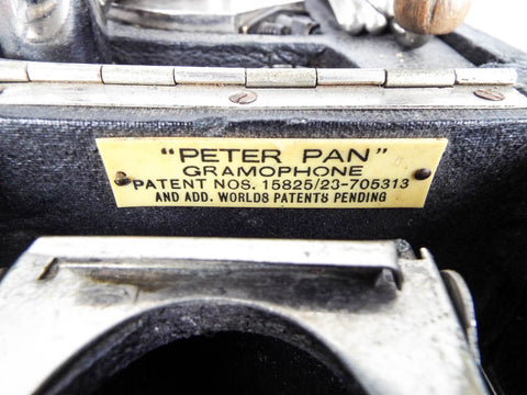 Marked: "Peter Pan" Gramophone, Patent Nos 15825/23-705313 and add. worlds patents pending.