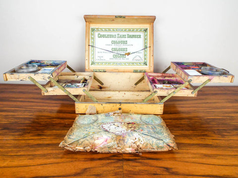 Antique 1900 French Painting Artists Paint Box Set Couleurs Sans Danger