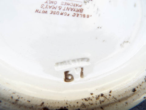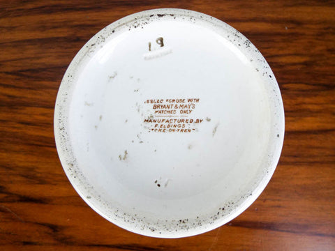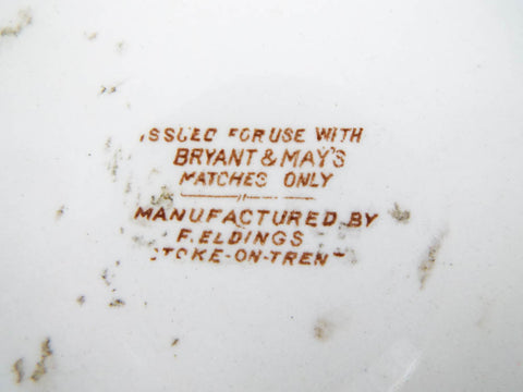 Marked underneath: Issued for use with Bryant & Mays Matches only. Manufactured F Elding, Stoke on Trent, 67