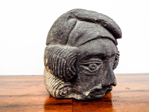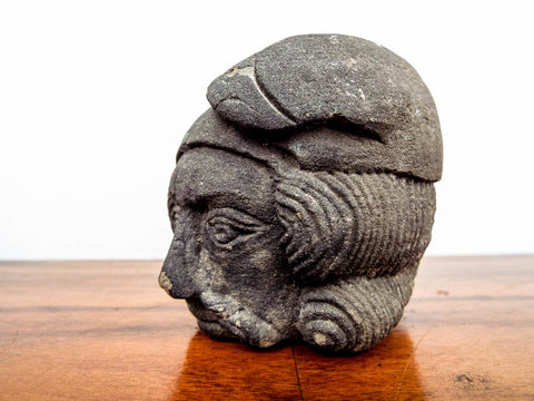 Antique Stone Basalt Carved French Head Phrygian
