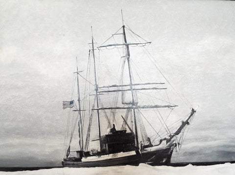 Antique USN Oil on Canvas Painting USS Bear Coast Guard Cutter Jessie A Yandell