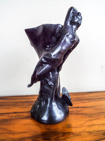 FLEA Antique Art Nouveau European Bronze Vase Blindfolded Wood Nymph Butterfly