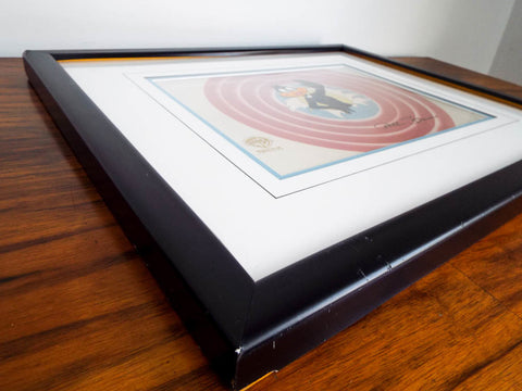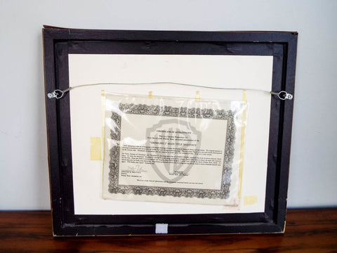 Framed sericel measures 19.5" wide by 16.5" tall by 0.75" deep and weighs 3lb 3oz.