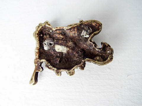 A single side of a letter opener. This brass obverse side is again heavily decorated (in repousse style) with a contorted dragon. Exquisitely cast this is only one sided.