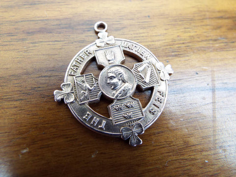 1925 Vintage 9ct Gold Religious Father Mathew Feis Badge Pendant Medal
