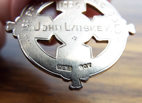 Etched on back: First Prize Baritone Solo, 1925, John Lynskey, W&S 9ct