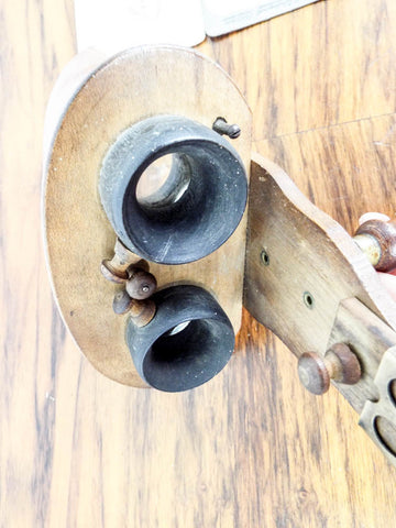 Antique wooden stereoviewer and cards. Late Victorian hand held stereoscope viewer with a patent date of april 23rd 1889. This was most likely a travel version as it folds down very efficiently, even the wire lugs fold in. A great compact stereograph viewer with some interesting period military cards.