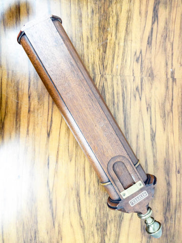 Vintage large wooden Stiffel wall thermometer. Measuring in farenheit this vintage kitchen wall thermometer was made in the late 1970's. Accurate in its temperature readings it has a great aesthetic look which would suit any vintage or modern kitchen. It can be suspended from the brass loop on the reverse or can stand independently. It is decorated with a brass finial on top.