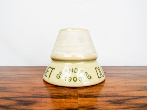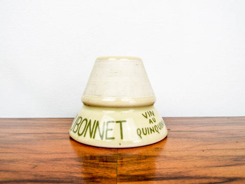 Vintage French advertising ceramic match striker and holder.   Vintage cafe match strike made by for Dubonnet liquor.   This most likely dates from the 1960's, being a remake of the earlier le Pyrogene models of the 1920's/30's and the presence of the match strike at the bottom of the piece.  It was part of a large collection purchased from a match strike and inkwell collector recently.