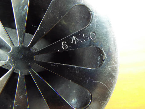 Vintage English ear trumpet. Known as a London dome due to its shape this antique metal hearing aid model OL350 was made by R J Dowling at the middle of the last century. The dome shaped ear trumpet has the military crows door mark as was issued during rationing up until 1954 but it actually denotes Medresco.