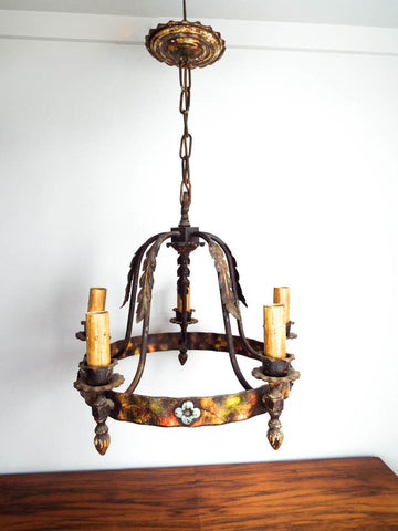 Vintage Spanish Style Wrought Iron Chandelier Ceiling Light Antique Lighting
