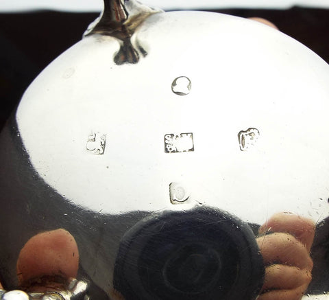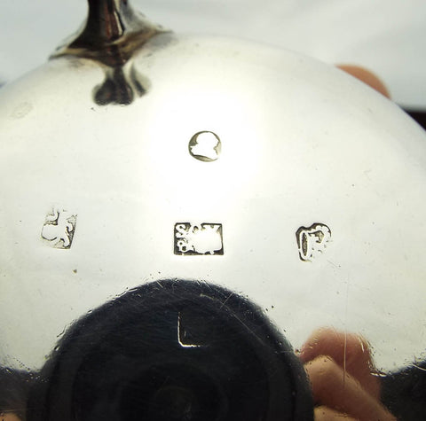 Salt cellars marked on base: lion passant (sterling), head( George IV), crown ( Sheffield), C (year mark), SGX?? (makers mark)